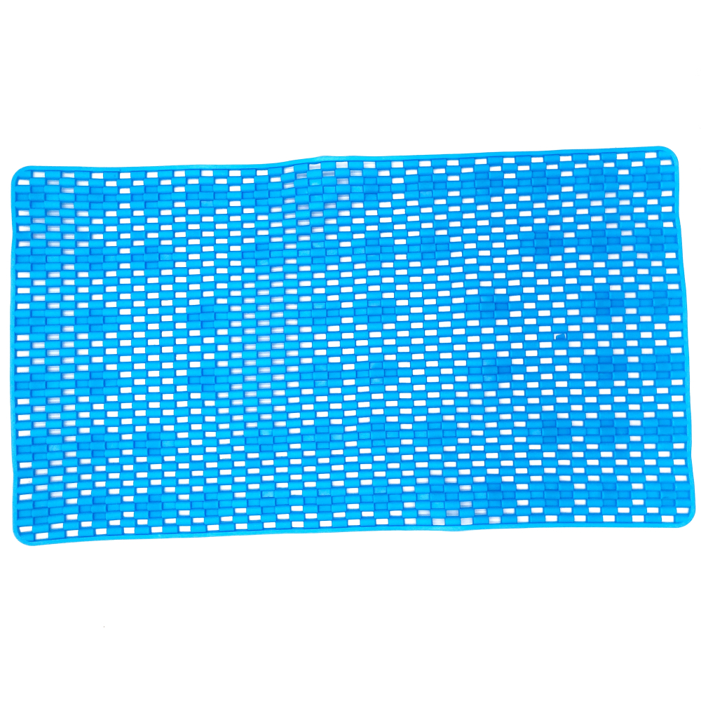 The bath mat features a non-slip surface. The bottom is equipped with numerous suction cups that keep it securely in place.