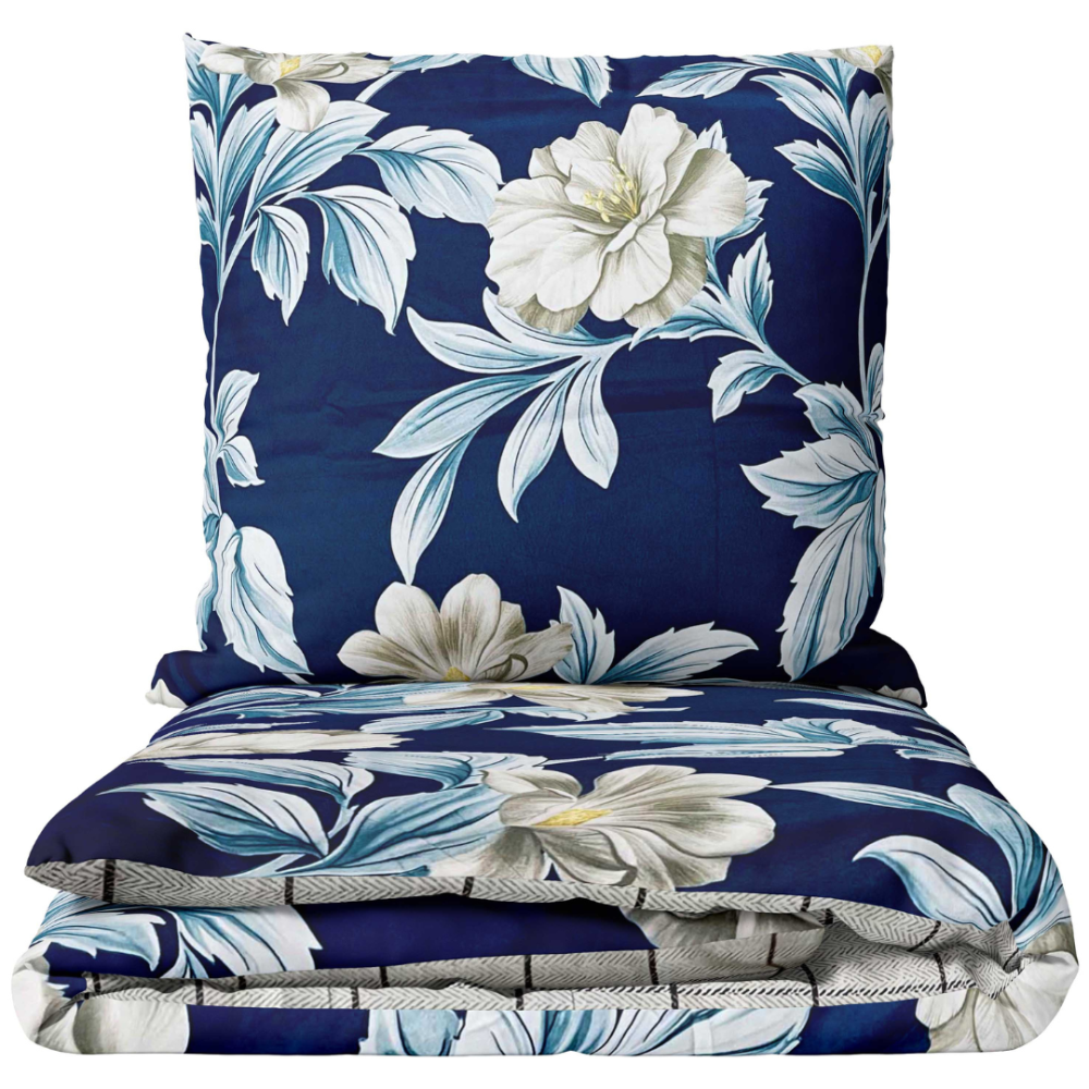 Dark blue bedding set with white floral pattern. The design exudes elegance and tranquility, while the contrasting colors add a touch of character to the bedroom. Large blossoms create a refined, classic look that suits both modern and traditional interiors. A perfect choice for those seeking harmony and sophistication.