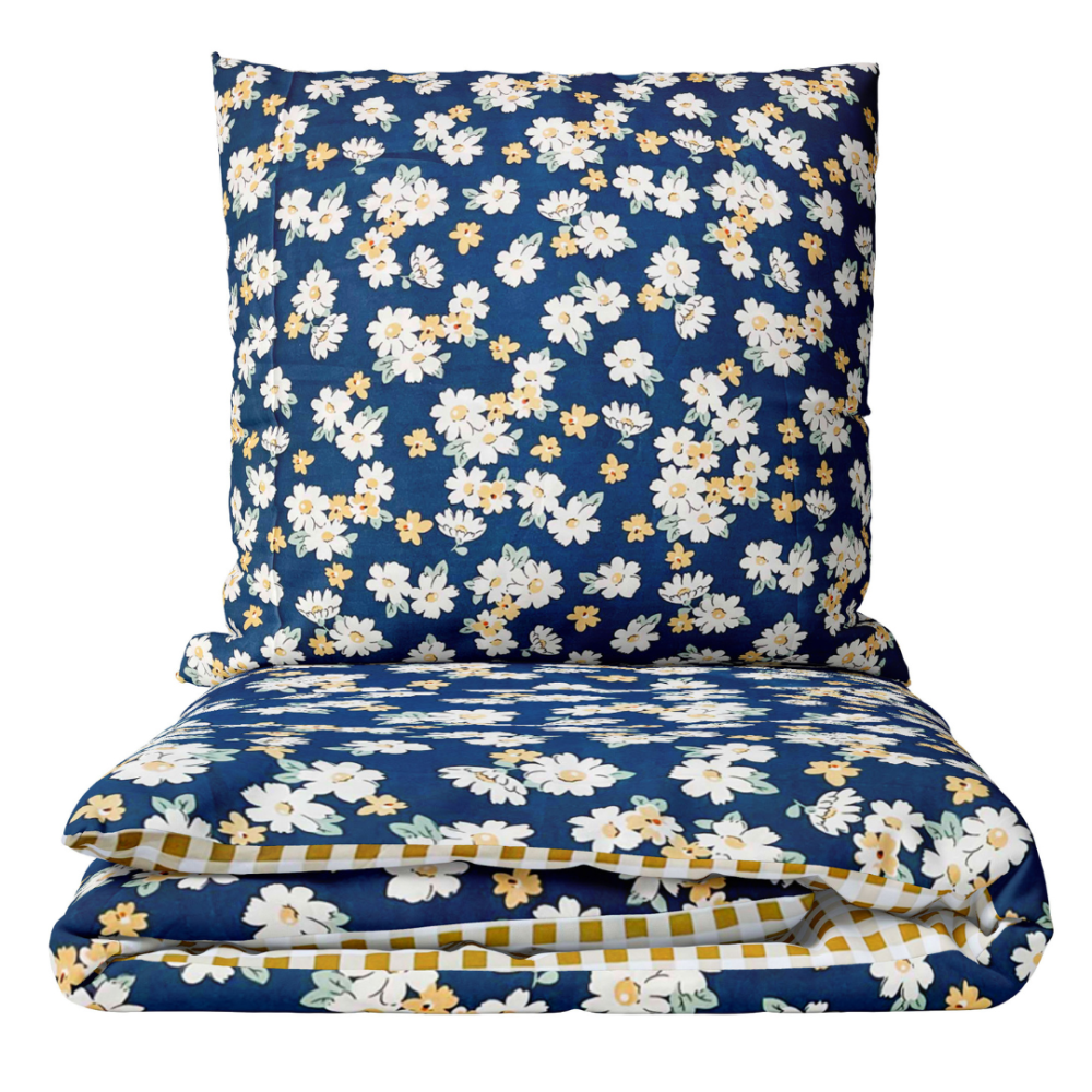 The “Chamomile” bedding set features earthy tones such as blue, yellow, and white, which promote restful sleep. Its blue background makes it easy to pair with sheets in a variety of colors – from bright to pastel – allowing you to create a new composition each time that reflects your mood.