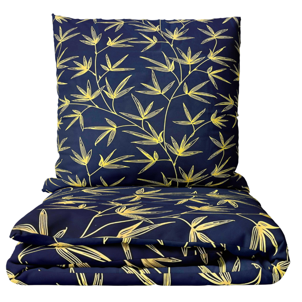 Transform your bedroom into a sanctuary with this stunning dark blue bedding set, beautifully highlighted by subtle yellow branches. The deep navy hue surrounds your space with a sense of peace and tranquility, while the vibrant yellow accents bring energy and life to the design, creating a striking contrast that captures the eye.