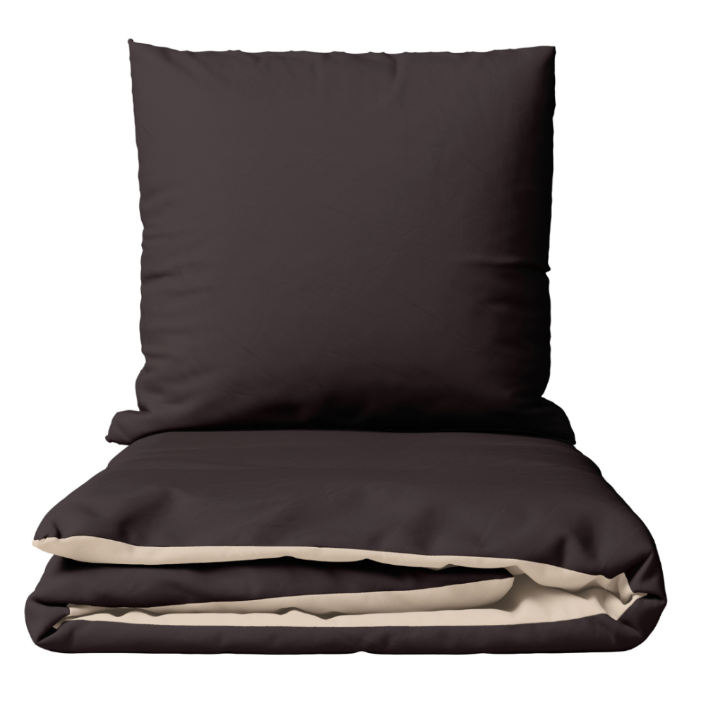 This earthy, dark brown bedding set pairs beautifully with both dark and light interior styles. The microfiber fabric gives it a subtle sheen and an elegant look. The set also complements lighter-toned cushions perfectly. Flip the duvet cover to reveal its reversible sand-colored side, offering an easy way to refresh your bedroom’s look.