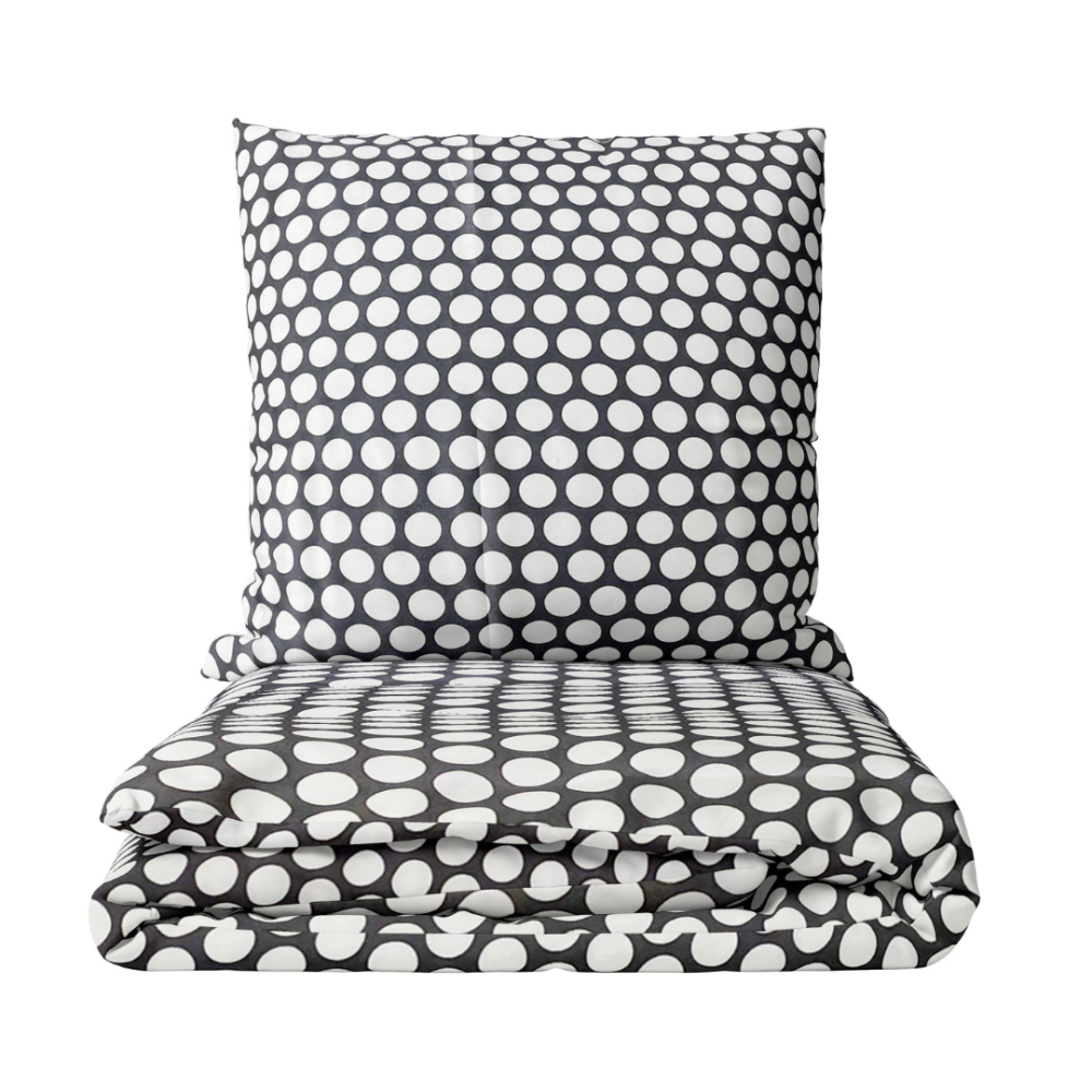 This dark grey bedding set with symmetrical white circles embodies modern elegance. The uniformity of the round shapes creates a sense of harmony and balance, while the contrast between the dark grey background and the bright white circles adds sophistication. The circles are evenly distributed and well-aligned, giving the set a clean and polished look. The simplicity of the design allows the circles to become the main accent — adding interest without overwhelming the overall style.