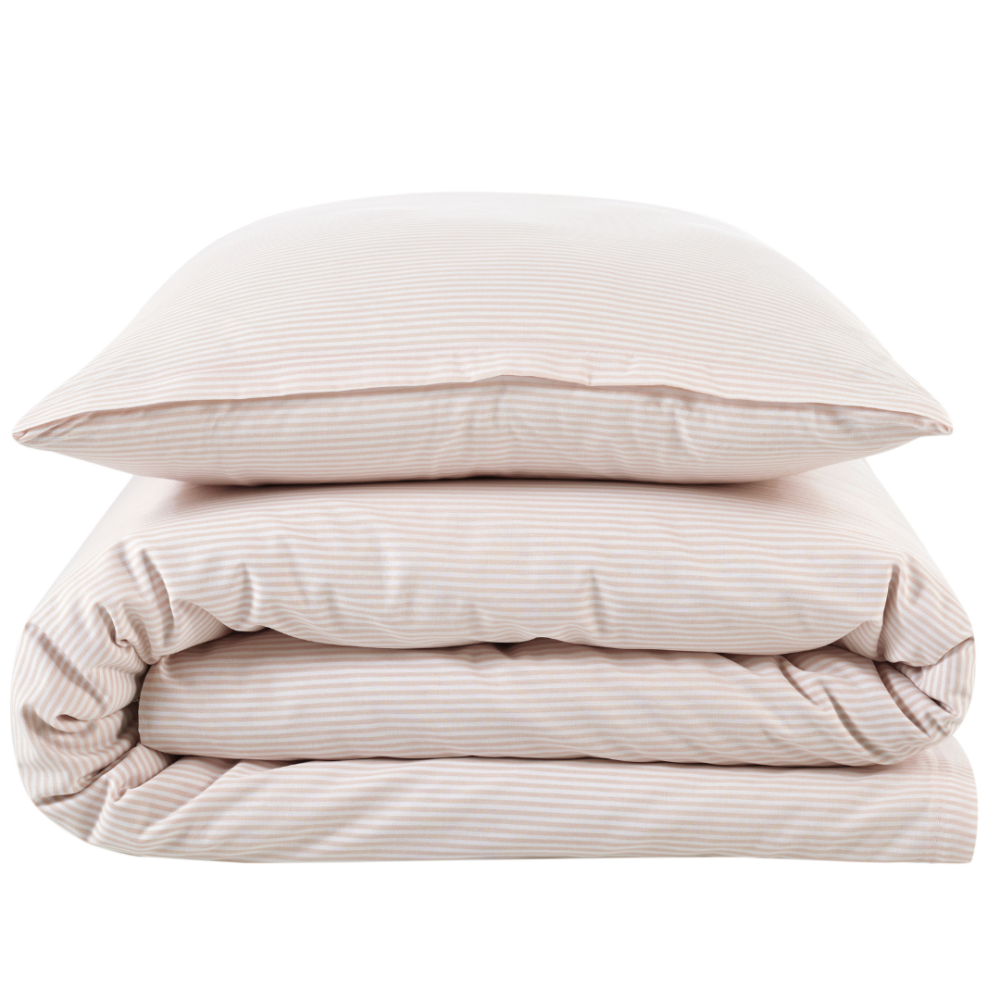 Transform your bedroom with this elegant beige and white bedding set, featuring a timeless line design that adds uniqueness to your space. The clean, minimalist pattern of shifting lines creates a bright and calming atmosphere – perfect for a restful night’s sleep.