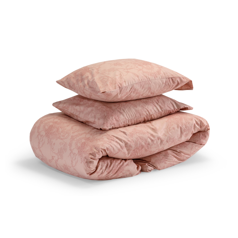 The natural cotton “Toile de jouy caffe” set features subtle patterns that bring liveliness and elegance to the fabric. By choosing this bedding, you also choose better sleep quality.