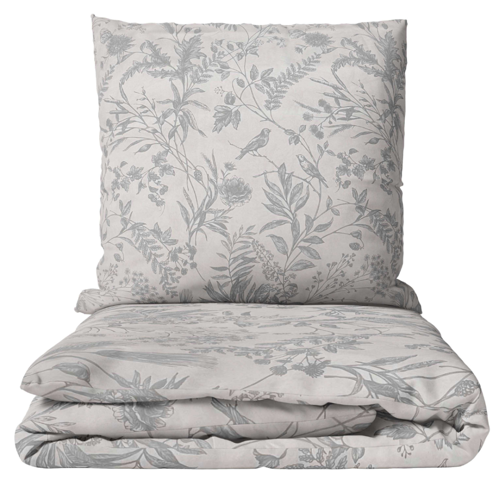 This refreshing gray bedding set is adorned with delicate meadow flower patterns that evoke natural elegance and tranquility. The subtle contrast between the pure gray background and the intricate floral motifs creates a calm, harmonious atmosphere – a perfect choice for adding a nature-inspired charm to your bedroom.