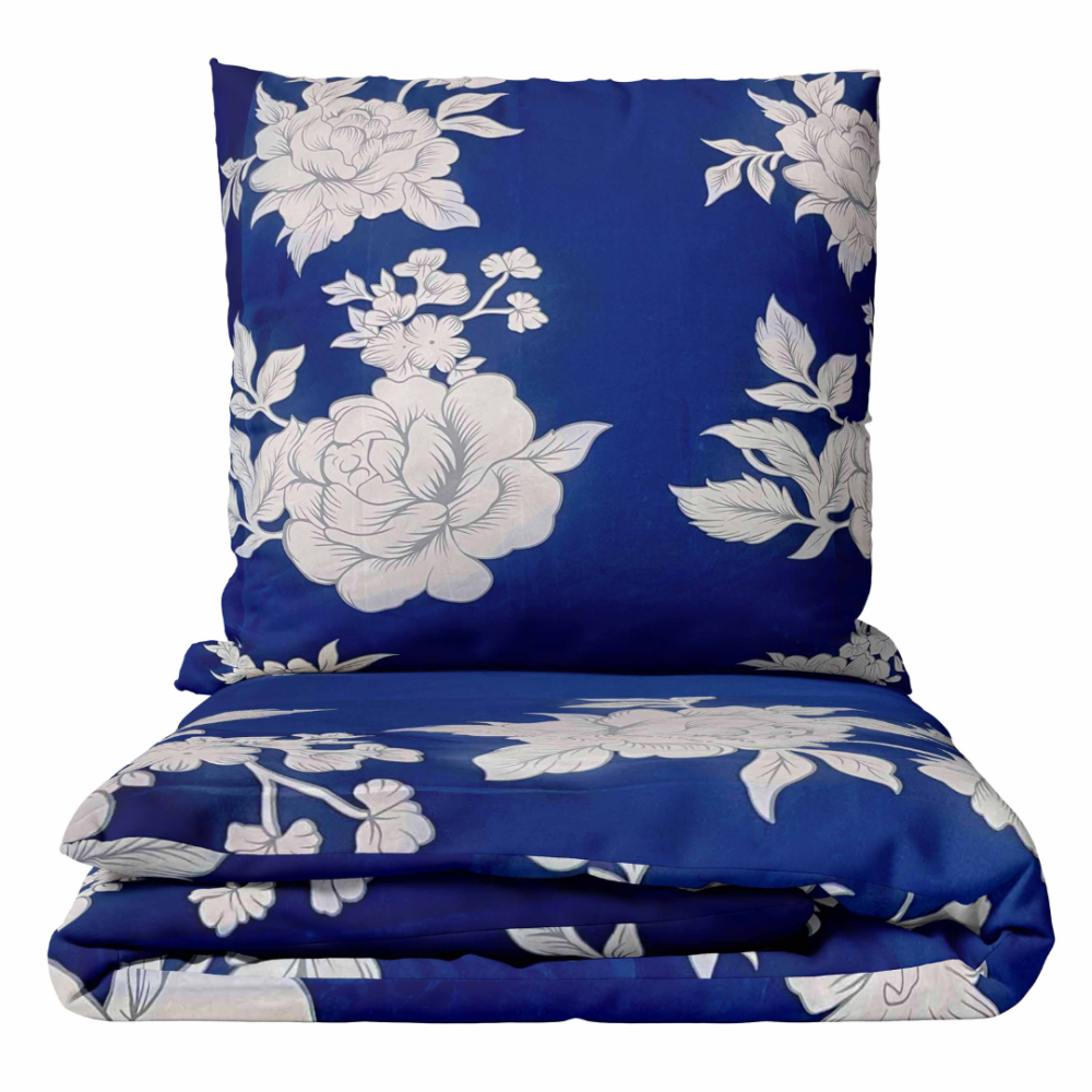 With this dark blue bedding set adorned with large light flowers, your bedroom will be infused with timeless elegance. The deep, rich navy background beautifully contrasts with the soft, delicate blossoms, creating a harmonious blend of boldness and grace.