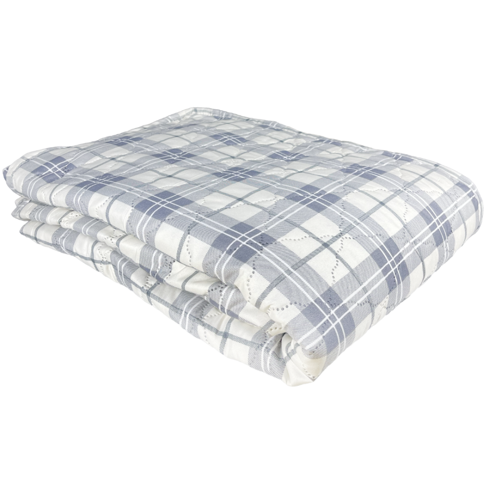 This bedspread features a subtle and elegant pattern crafted in soft blue and white tones. The design is inspired by classic checks, offering a clean and organized appearance. The varying sizes and intensity of the squares create a harmonious and cozy effect. Perfect for both modern and traditional interiors, this bedspread brings a sense of calm and elegance to your bedroom.