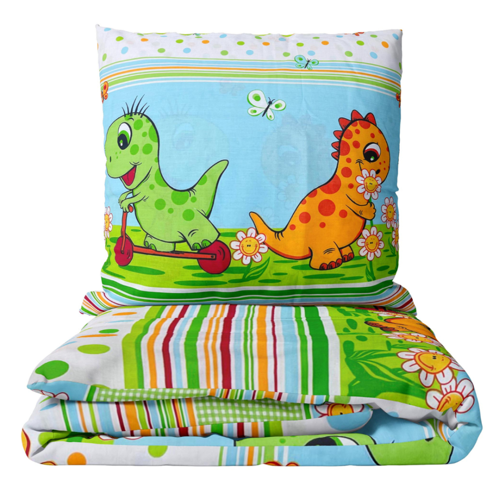 A light green bedding set decorated with playful little dinosaurs in shades of green and orange. This charming set transforms your child’s bedroom into a whimsical prehistoric wonderland. The soft light green background has a calming effect, perfect for restful sleep, while the delightful dinosaur characters add fun and adventure.