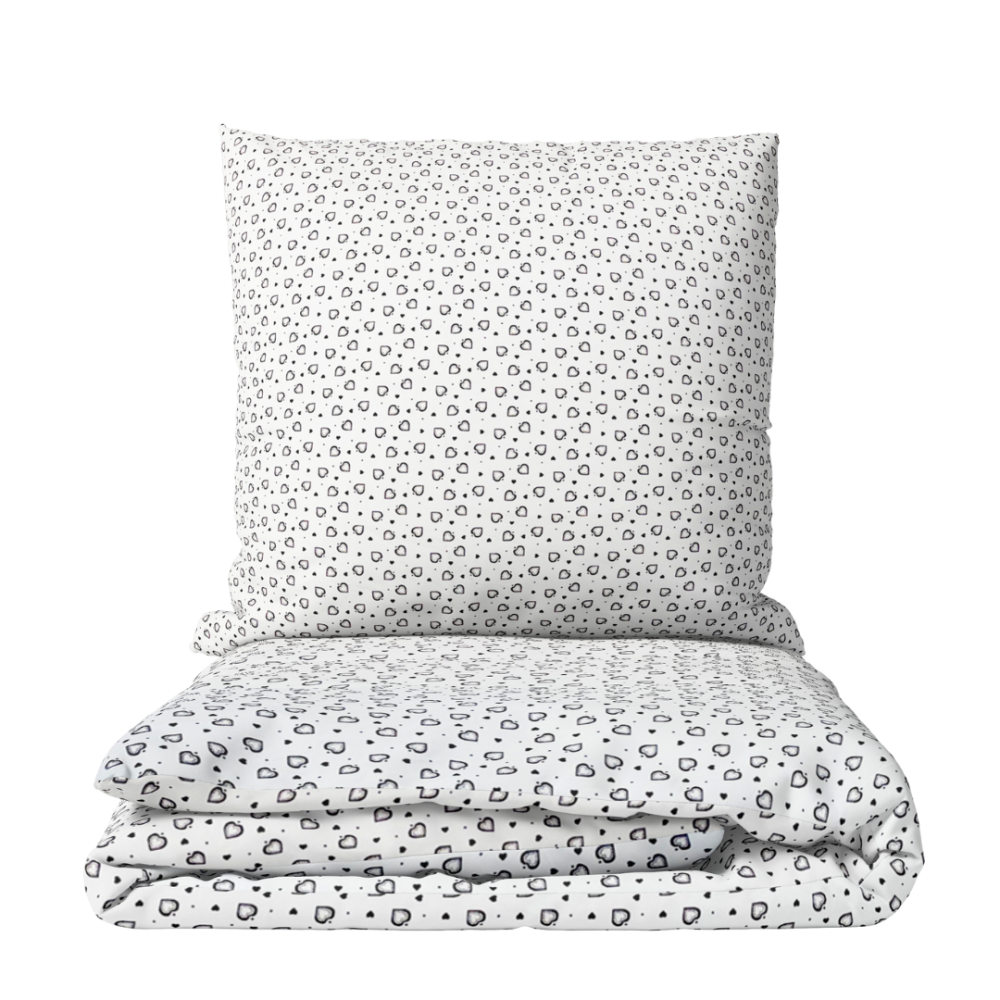 In a minimalist setting, the black and white heart patterns bring charm and elegance. These shades are easy to match with bright colors, making this bedding versatile for any room. The heart motif is perfect for bold, young, and active personalities who want their bedroom to radiate energy rather than dullness.