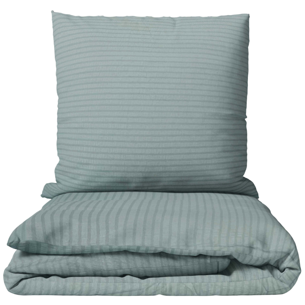 Gray-green bedding set with a subtle pattern. This calm shade combines the elegance of gray with the freshness of green, making it a perfect fit for both classic and modern interiors. The uniform color scheme and minimalist design create a neat and harmonious look. This bedding set brings naturalness, coziness, and subtle aesthetics to the bedroom.