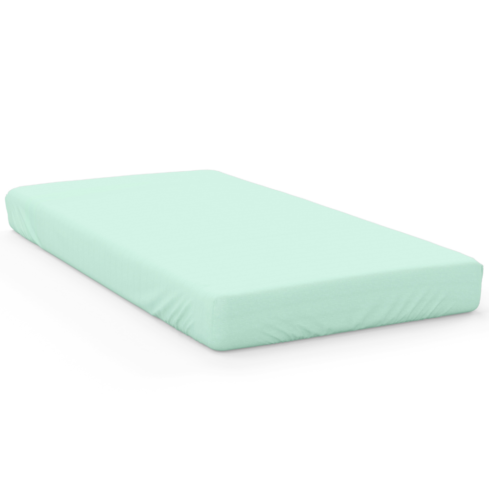 This mint-colored fitted sheet is a true visual delight. The soft mint hue gently flows across the sheet, creating a feeling of serenity and calm. Its surface is smooth and pleasant to the touch, inviting you to slip under the covers and drift into peaceful sleep. The sheet features a minimalist, clean, and uncluttered design that is both modern and refined.