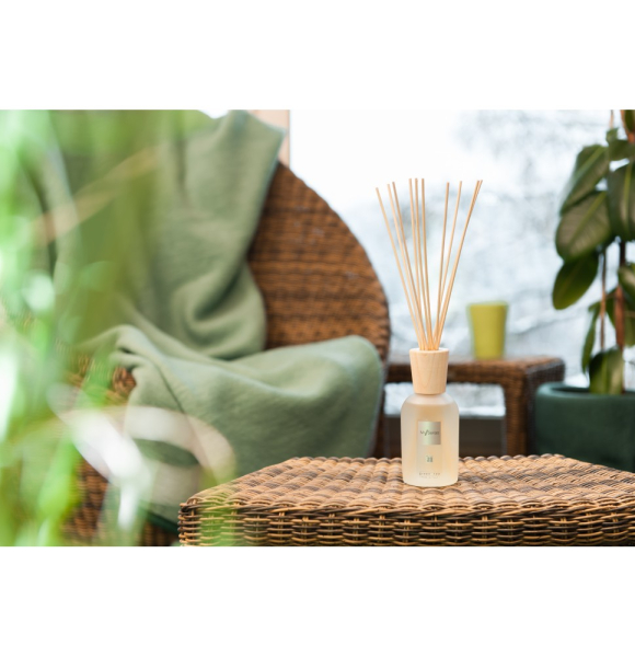 “My Senso” diffusers stand out not only for their fragrances but also for their looks. The light, matte glass bottle topped with a natural wood cork pairs beautifully with both bright and dark interiors. You can adjust the fragrance intensity by varying the number of wooden reeds—the more reeds you insert, the stronger the scent.