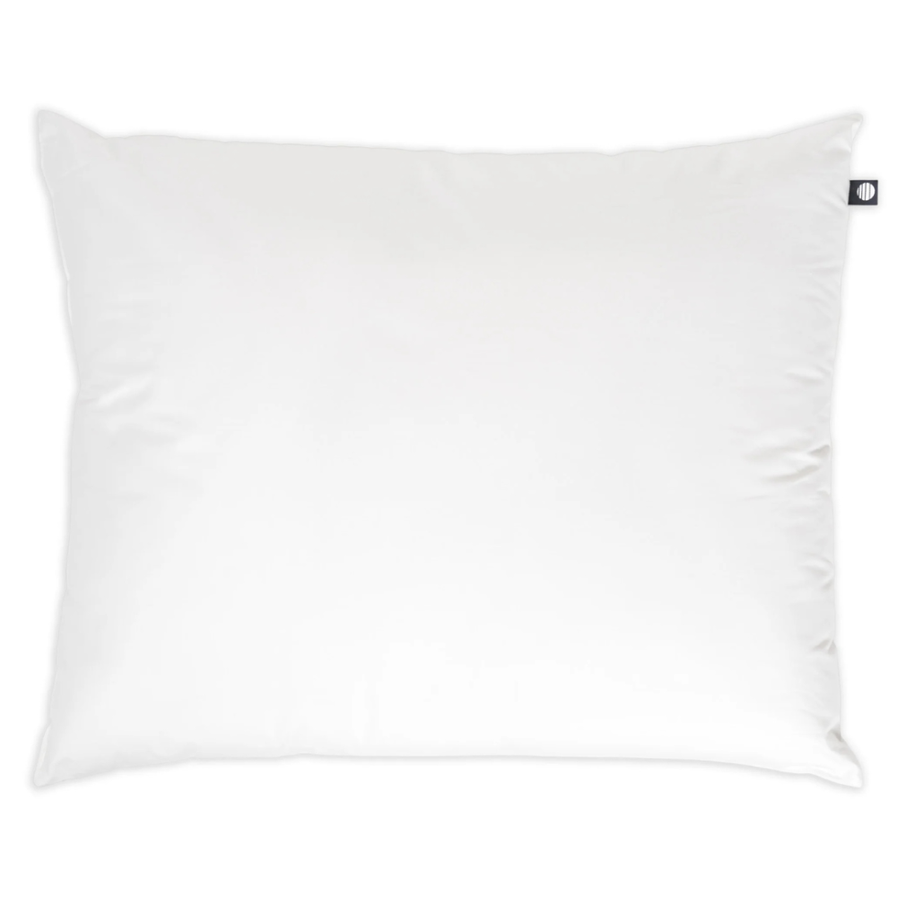 The pillow is filled with 600 g of light and airy 100% recycled Cirrus polyester. The filling is made from recycled materials, including PET bottles – around 21 bottles are used per pillow. The layered fibre structure helps maintain shape and ensures even distribution during use.