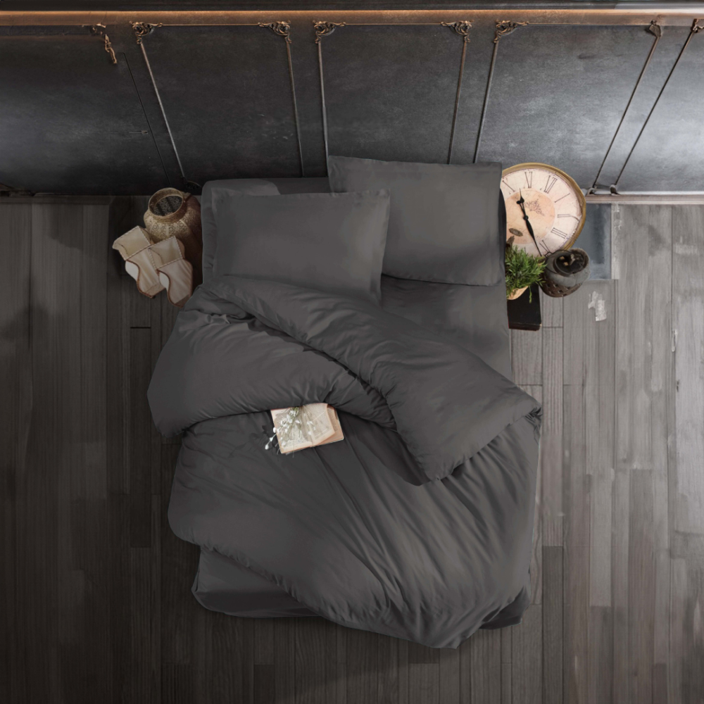 The anthracite-colored bedding set brings a sense of modern sophistication and refined elegance to any bedroom. Its dark, coal-like shade reflects luxury, depth, and a sleek contemporary appeal. This versatile color is a perfect choice for those who seek a stylish and elegant look that blends easily with various interior styles – from minimalist to industrial or even classic décor.