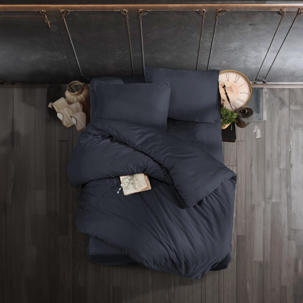 Featuring soothing tones, the dark blue bedding set evokes a sense of classic sophistication. It harmonizes with various design styles – from modern to vintage or even eclectic – making it a versatile choice that complements a wide range of decorative elements. It brings a calming yet striking accent to any bedroom.