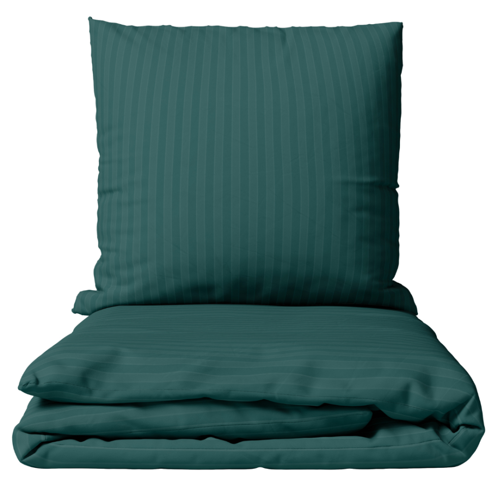 This bedding set features a rich dark green shade with subtle vertical stripes. The color creates a calm yet playful look, perfectly matched with the minimalist design. The vertical stripes add texture and depth, giving the bedding a more refined appearance. The deep green ensures elegance and tranquility, making this set suitable for both modern and classic interiors.