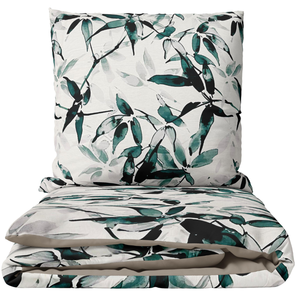 This bedding set stands out with its refreshing design, featuring various shades of green on a white background. Watercolor-style leaf motifs create an impression of lightness and natural beauty, while the soft contrasting color palette allows the design to blend seamlessly into different bedroom interiors. Inspired by nature’s calmness, this bedding is ideal for both modern and cozy classic spaces where cleanliness, brightness, and visual freshness matter.