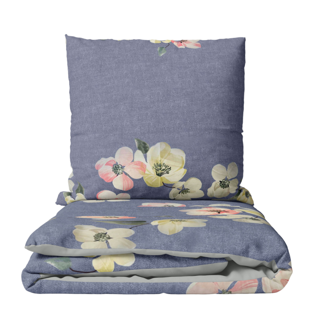A deep, captivating shade of blue wraps your bedroom in a veil of silence and serenity. The centerpiece of this stunning bedding set is its enchanting floral pattern, breathing life and color into the design. Carefully crafted white, yellow, and pink flowers create a delicate symphony of beauty against the rich blue backdrop. Every petal and blossom is depicted with intricate detail, capturing the grace of nature. The harmonious blend of colors brings vibrancy and sophistication, evoking feelings of joy and tranquility. Resting under this duvet feels like lying in the heart of a peaceful garden, surrounded by soothing blooms of nature.