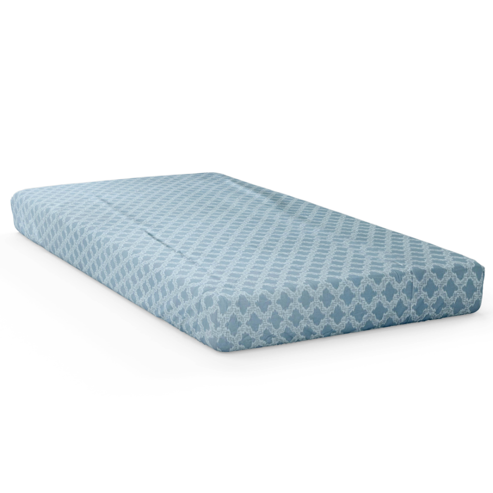 This blue sheet transforms your bedroom into a modern oasis. Its contemporary design makes a strong impression with a bold geometric pattern in various shades of blue, adding a dynamic and stylish touch to your sleep space.