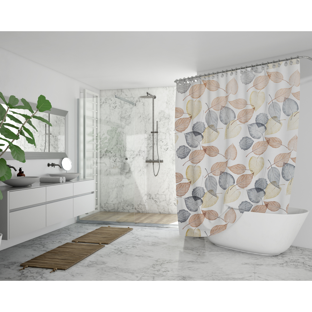 The “Autumn” shower curtain brings a festive and seasonal charm to your bathroom. Decorated with autumn leaves, it fills your space with a vibrant palette of warm colors that delight the eye and evoke the beauty of the fall season. Ideal for anyone looking to add a stylish and playful accent to their bathroom, the “Autumn” curtain opens up a world of natural hues, creating the cozy feeling of a warm autumn evening.