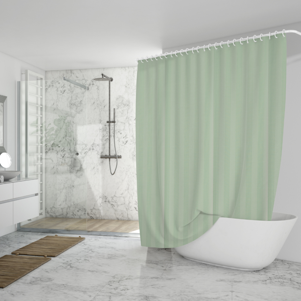 The “Green lines” shower curtain features a calming design with elegant green stripes. This neutral color combination creates a relaxing atmosphere, helping you unwind and rest your eyes after a long day. Green tones are known for their soothing effect, making these curtains perfect for anyone looking to add a stylish and tranquil accent to their bathroom.