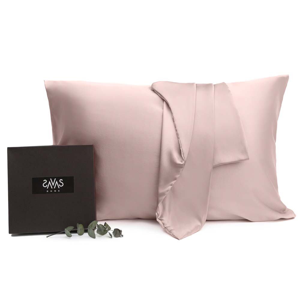 Luxurious pink Mulberry silk pillowcase (18 momme), distinguished by its natural sheen and exceptional softness.